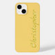 Imagem metálica de capas de iphone de gabinete de textura radial amarela personalizada com cor amarela clara. Remova / troque "Christopher" antes da compra. Design está disponível em outros produtos.