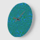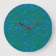 Um relógio de parede acrílico redondo, com um padrão abstrato azul e verde de texturas submarinas e cores que coordena com a coleção de Posh e Painterly "Fish in the Sea"; este padrão pode ser ajustado para ajustado qualquer relógio.