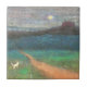 Bring the quiet magic of a midnight forest to your home with this exquisite ceramic tile. This captivating Japanese Nihonga masterpiece poetically evokes the sound and feel of a deep, tranquil forest, capturing a serene and mysterious scene: a lone white cat begins a midnight journey towards a distant, ancient German castle.