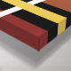 The Crossing canvas art. The Crossing is an abstract design created by Anna M. Asbury and consists of a black background with red, yellow, orange, and white lines.