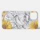 Um desenho caneta de bola preto e branco de um cavalo cortante com girassóis. Arte de Caneta por Robin D. Cox.