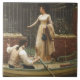 Este design apresenta uma pintura do artista inglês Edmund Blair Leighton (1852-1922). Mostra um cavalheiro vestindo vestido formal num barco a remos. Ele está ao lado do portão de uma grande casa de mansão, e uma mulher vestindo um vestido elegante está caminhando pelos degraus prontos para conhecê-lo. Eles estão fazendo uma aventura empolgante e apaixonada juntos. Talvez a família da jovem não saiba que ela está fugindo com esse estranho bonito. É uma bela cena de amor romântico. O trabalho artístico original foi pintado em 1893.