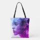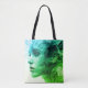 The face of a young woman in wisps of smoke, is on the front and back of this eye-catching, reusable shopping bag/tote bag.