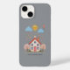 Esta encantadora ilustración captura la esencia de la felicidad y la calidez. La imagen muestra una pequeña casa blanca con detalles rojos, rodeada por árboles con hojas en forma de corazón y flores amarillas que dan vida al paisaje. Sobre el tejado, un perro sonriente observa la escena, mientras que en el cielo, un sol radiante y sonriente derrama luz sobre todo.