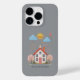 Esta encantadora ilustración captura la esencia de la felicidad y la calidez. La imagen muestra una pequeña casa blanca con detalles rojos, rodeada por árboles con hojas en forma de corazón y flores amarillas que dan vida al paisaje. Sobre el tejado, un perro sonriente observa la escena, mientras que en el cielo, un sol radiante y sonriente derrama luz sobre todo.