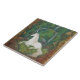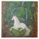 Bring the enchanting world of a mythic garden into your home with this exquisite ceramic tile. This captivating Japanese Nihonga masterpiece draws you into a secluded, sacred space, where a majestic unicorn rests in a tranquil garden. The scene is viewed through what appears to be an intricate, stained glass-like window, adding to its mysterious and dreamlike quality.