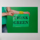 Think Green poster with a photo of a person holding a Think Green sign. Share your message to protect the Earth with a Think Green poster!