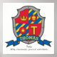 Estilo do Cavaleiro escudo monograma O nome da arte T é poster perfeito para um quarto de meninos ou sala de jogos em tons de vermelho, amarelo, azul e cinza. Personalize com o nome e o nome do seu filho, significando um toque verdadeiramente personalizado no quarto ou no berçário do seu filho, este exemplo é para o nome Thomas Twin. Testemunha, carismática, prática e atlética. Poster impressão ideal para um presente para um bebê novo, para batizar, nomear um bebê ou um presente de chá de fraldas. Desenho de escudo exclusivo, arte gráfica e design por Sarah Trett. www.sarahtrett.com para www.mylittleeden.com