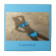 Biquíni azul de duas peças na praia e sombra feminina para personalizar, personalizar mudando para seu nome