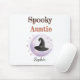 Adicione o charme do Dia das Bruxas ao seu espaço de trabalho com esta Tia Mousepad Personalizada, com chapéu de bruxa, lua crescente e nome personalizável. Um presente perfeito para sua tia favorita ou um acessório de mesa para bruxas no coração. Excelente para escritórios, salas de aula ou configurações de casa durante o outono e o Halloween!