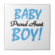 Se você for a nova e orgulhosa tia de um sobrinho, você vai adorar a esportiva dessas camisetas designs de texto negras e azuis da Tia Orgulhosa, copos de tanques, canecas, cartões, adesivos, sacos de tote, botões de anúncio de bebês, e outras roupas e presentes de tia.
