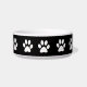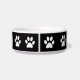 Bacia pequena do cão dos impressões da pata com patas brancas e fundo preto e um lugar você pode adicionar seu fazer conhecido dos cães isto um design elegante da bacia do animal de estimação. Use seu para um prato da água, o prato da comida, ou o saco para todos seus deleites do doggy.