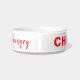 Tigela Adicione foto e nomeie um cão branco vermelho fami
