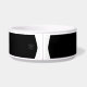O fundo preto com uma gravata vermelha de arco faz esta tigela parecer um smoking. Design masculino para cães e gatos. Personalize isto com o nome de um animal de estimação.