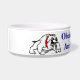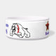 as classes da obediência são para a bacia customizável do buldogue dos Wimps. Esta bacia vermelha e branca engraçada do alimento para cães ou da água tem o texto da "classes obediência é para Wimps" com um cão engraçado do touro dos desenhos animados que funciona em torno da bacia e de uma estrela do vermelho e do ouro com o símbolo da anarquia na parte traseira. Aperfeiçoe para todos os amantes do cão ou do animal de estimação especialmente aqueles com um cão impertinente. Adicione seu próprio nome de animal de estimação para um presente inteiramente customizável e personalizado do animal de estimação ou do cão.