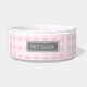 O divertimento e o cão moderno rolam no teste padrão ocasional e rústico pastel claro do rosa de bebê, o cinzento e o branco do guingão do verificador. Personalize esta bacia do cão com seu nome de animal de estimação para uma bacia original da comida ou da água para seu filhote de cachorro.
