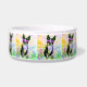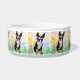 bacia colorida do animal de estimação com o terrier legal de Boston que veste óculos de sol. Arte por Amanda Basham