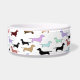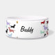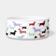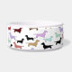 Bacia bonito para que seu animal de estimação coma ou bebam fora de. Caracteriza lotes de cães pequenos do dachshund por todo o lado nele em muitas cores. Há um espaço para personalizar seu nome de animal de estimação.