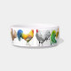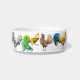 O design original das belas artes de galos extravagantes pelo artista Carolyn McFann do estúdio de ronrom de dois gatos imprimiu em uma bacia dos alimentos para animais de estimação da qualidade para fãs da galinha.