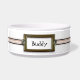 Prato à moda do alimento para cães, com gráficos bonito de um rosa, de preto, e de uma fita do tan, em torno do prato, e de um metal que olha a placa conhecida, no meio para seu nome de animal de estimação. O texto feito sob encomenda preto permite que você personalize com seu nome de animal de estimação, porque uma bacia personalizada seu cão pode ser orgulhosa de. Faz uma grande ideia do presente.