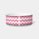 Bacia cerâmica à moda do gato projetada com um teste padrão de ziguezague cor-de-rosa & branco da viga e personalizada com seu nome de animal de estimação.
