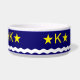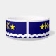 Pet Bowl com design com bandeira de Kinshasa, capital da República Democrática do Congo, bandeira azul com onda branca, duas estrelas ouros e letra K no centro