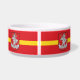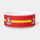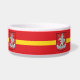 Pet Bowl com design com bandeira de Vilnius, capital da Lituânia; bandeira vermelha com faixa amarela e casacos de armas com dois leões ouro segurando um escudo no centro