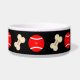 Uma tigela de animal de estimação com desenhos à mão de ossos e bolas. O fundo, imagens e texto podem ser personalizados. Arte original de W.B.