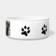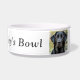 Uma tigela branca de animais de estimação com uma foto personalizável de um labrador preto giro, texto personalizável e pata de cão! Basta carregar uma foto do seu cachorro ou gato ou qualquer coisa que você quiser e mudar o nome. Será perfeito como presente para uma família acolhendo um novo animal de estimação!