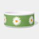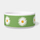 Floral design featuring Destei's illustration of blooming white daisy flowers on a green background color. Cute design for pets named Daisy, for example.