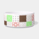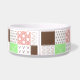 Bicicleta de cão de vassoura branca, personalizada, com bolinhas verdes cor-de-rosa, mauve, castanho, burgundy e sábio e padrões de listras. As cores quentes da Terra.