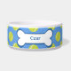 Uma tigela de comida de cão super fofa com bolas de tênis e osso de cão divertidas com o nome do seu cão no osso.
