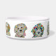Uma tigela de cão colorida única desenhada a partir da minha de uma espécie de pinturas acrílicas. Esta tigela apresenta um labrador, pitbull, mistura de collie de fronteira, brittany spaniel, sheepadoodle, cockapoo, Yorkshire terrier e terrier bichon mix. presente de excelente para quem ama cães! Você não encontrará esta tigela única em nenhuma loja. A tigela pode ser personalizada se você quiser alterar a cor do plano de fundo ou adicionar texto!