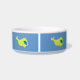 Peixe amarelo sobre fundo azul, tigela de gato. Adicionar o nome substituindo este texto