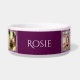 Uma tigela de comida personalizada para cães à qual você adiciona fotos e seu nome de cão. Basta escolher a opção personalizar para atualizar os campos. A cor de fundo pode ser alterada com a opção personalizar. 203-302-0337 HAMbyWhiteGlove. Mostrado em Ametist.
