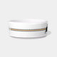 A tigela de comida branca de gatos cerâmicos tem duas placas gráficas de gato em cada lado do titular do nome preto. Há uma banda de cor de efeito especial em cada lado, que tem um design cruzado nítido através dela. Um olhar muito feminino e real numa tigela de gato. Projetado por HAMbyWhiteGlove.
