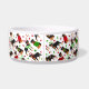 Cães girinos de Natal bonitos em roupas festivas de férias. Os rottweilers com casacos pretas e bronzeadas seguram canas doces, vestem chapéus de Papai Noel, chifres, suéteres com ornamentos espalhados.