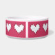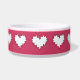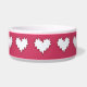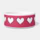 o branco encaracolado do coração na bacia cerâmica cor-de-rosa escura do animal de estimação podia ser uma comida ou uma bacia agradável do bebendo para um cão ou um gato. podia ser apropriado para alguém estabelecimento para um animal de estimação novo e gostava de um recipiente de servir kibble ou molham.