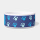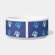 Um osso perfeito para cães e pata imprime uma tigela personalizada para seu companheiro canino. Personalize para escrever o nome do seu cão nesta tigela por uma manutenção de excelente e para que o seu cão desfrute durante muito tempo. A tigela tem diferentes tons de azul.