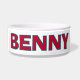 Tigela de estimação personalizada vermelha com contorno azul e fundo branco. Tigela de cachorro. Cachorro personalizado. Tigela de cachorro personalizada. Cachorro macho. Prato de cachorro.