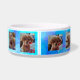 Arte Abstrato azul e branca derrete uma tigela de cão moderna com o nome do seu animal de estimação e fotos nela.