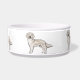 A ilustração original do desenho animado de Destei de um cão da raça Retriever, Ouro de cor Cream em inglês. O design do cão é colocado várias vezes neste fazer de tigela que as ilustrações do cão rodam o produto.