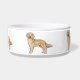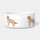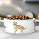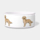 A ilustração original do desenho animado de Destei de um cão da raça Retriever Ouro de cor amarela. O design do cão é colocado várias vezes neste fazer de tigela que as ilustrações do cão rodam o produto.