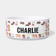 O design apresenta cães felizes e fofos e itens para animais de estimação e nome personalizável. Para acessar as ferramentas avançadas de edição, vá para “Personalizar”, desça a página e clique no link "clique para personalizar ainda mais".