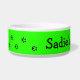 Grande presente feito sob encomenda do animal de estimação para proprietários do cão ou do gato. Adicione a imagem do seu cão a esta bacia bonito do cão com seus nome e impressões da pata. Este é verde limão mas você pode mudar a cor na área do personalizamento.