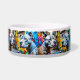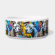 Tigela grande para cães para um dono de Pitbull. Arte colorida que retrata dois Pitbulls diferentes cercados por arte de rua.
