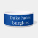 "Duke odeia ladrões" a tigela de alimentação e rega pode ser alterada para o nome do seu cão, e o título do seu cão se desejar. (Duke o Poderoso, Bella a Bonita, ou simplesmente Charlie é Legal.)