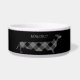 Tigela de cachorro personalizada para amantes de cães salsicha ou amantes de tudo o que é elegante e um pouco excêntrico com dachshund alongado em xadrez preto em um fundo preto.