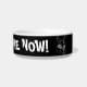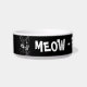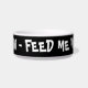 Tigela de comida para gatos ilustrada em preto e branco com o texto 'Miau - Alimente-me agora!'