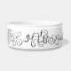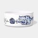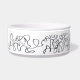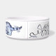 Um gato brinca com uma bola de fio em torno desta tigela de pet. A arte original feita à mão por Sue Clancy